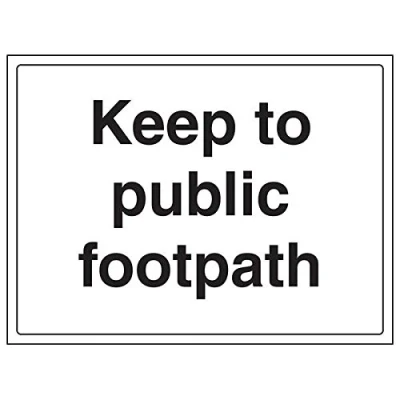 Provides essential information of the dangers on private properties to ensure personal safety as per Health and Safety (Safety Signs & Signals) Regulations 1996 Conforms to EN ISO 7010:2012 Landscape Orientation. Sign reads "Keep To Public Footpath" Highly durable 1mm plastic material and screen printed message will stand the test of time Sign measures 400 x 300mm.