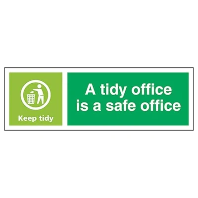 V Safety A Tidy Office Is Safe Office, Keep Landscape 300 x 100 mm Glow In The Dark Self Adhesive Vinyl Sign