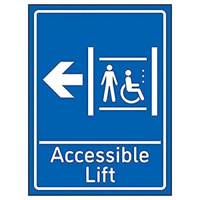 V Safety Accessible Lift Arrow Left 200mm x 300mm Blue Self Adhesive Vinyl