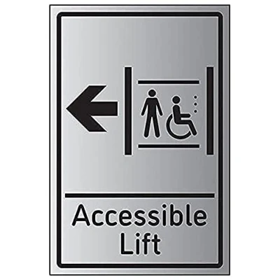 V Safety Accessible Lift Arrow Left 200mm x 300mm Self Adhesive Aluminium Effect