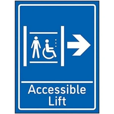 V Safety Accessible Lift Arrow Right 200mm x 300mm Blue Self Adhesive Vinyl