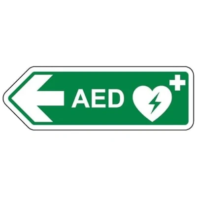 V Safety AED Arrow Left Shaped Sign 450 x 150 mm 2mm Super Tough Rigid Plastic