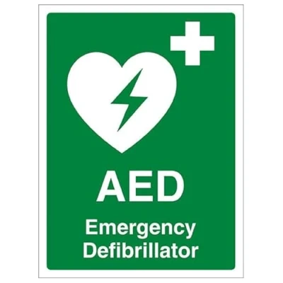 V Safety AED Emergency Defibrillator 300 x 400mm 2mm Rigid Plastic Sign