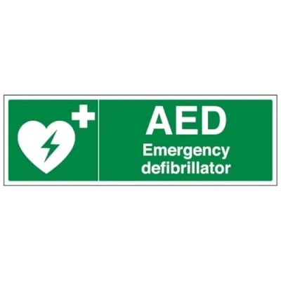 V Safety AED Emergency Defibrillator Landscape 450 x 150 mm 2mm Rigid Plastic Sign