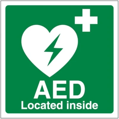 V Safety AED Located Inside 150 x mm 3mm Brushed Aluminium Composite Sign