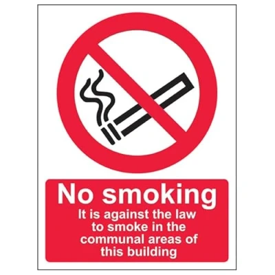Clearly establishes areas where smoking is prohibited and allowed Smoke-free signs are a legal requirement for all UK businesses Conforms to EN ISO 7010:2012 Highly durable – choose from robust 3mm aluminium composite, durable rigid plastic or great value flexible self-adhesive vinyl Easy to apply – rigid plastic and self adhesive vinyl sign types come with their own adhesive