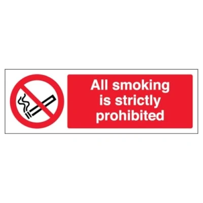 V Safety All Smoking Is Strictly Prohibited Landscape 300 x 100 mm 2mm Rigid Plastic Sign