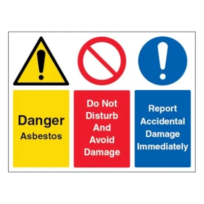 V Safety Asbestos/Do Not Disturb/Avoid Damage Landscape 400 x 300 mm 2mm Super Tough Rigid Plastic Sign