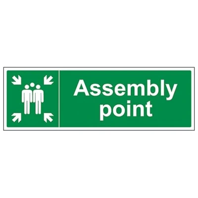 V Safety Assembly Point Landscape 450 x 150 mm 2mm Rigid Plastic Sign