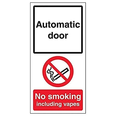 V Safety Automatic Door No Smoking Inc Vapes 150mm x 300mm Self Adhesive Vinyl