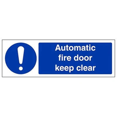 V Safety Automatic Fire Door Keep Clear Landscape 300 x 100 mm Self Adhesive Vinyl Aluminium Effect Sign