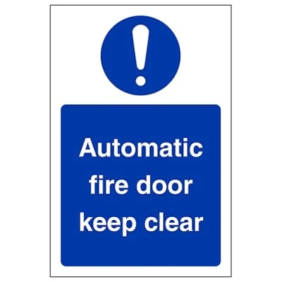 V Safety Automatic Fire Door Keep Clear Portrait 150 x 200 mm Self Adhesive Vinyl Aluminium Effect Sign