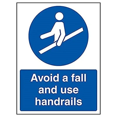 V Safety Avoid A Fall And Use Handrails 200mm x 300mm 1mm Rigid Plastic