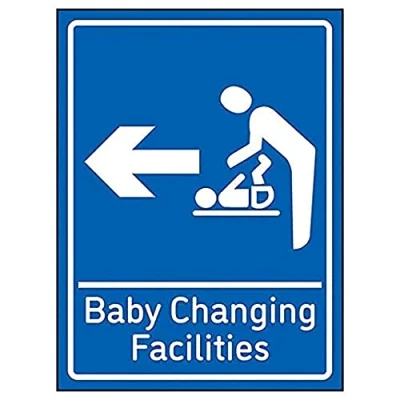 V Safety Baby Changing Facilities Arrow Left 200mm x 300mm Blue 1mm Rigid Plastic