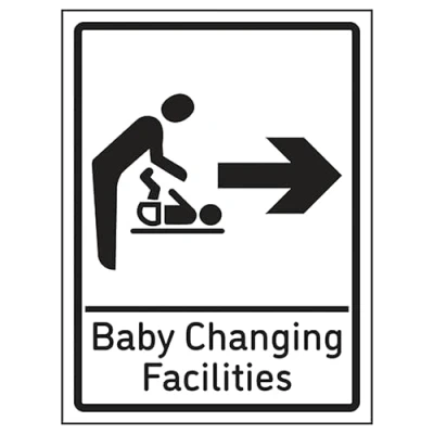 V Safety Baby Changing Facilities Arrow Right 150 x 200 mm Glow In The Dark Self Adhesive Vinyl Sign