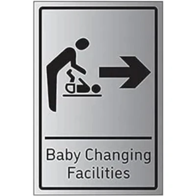 V Safety Baby Changing Facilities Arrow Right 150mm x 200mm 1.6mm Alu Effect Rigid Plastic