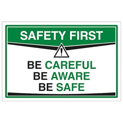 Safety First Signs are a great addition to your workplace signage being a constant reminder of working safely and promoting good working practices Demonstrate your company’s commitment to safety Send the right message quickly and efficiently Increase safety consciousness among employees 2mm Super-Tough Rigid Plastic, impact-resistant, shatterproof, and designed to withstand vandalism and harsh environments.