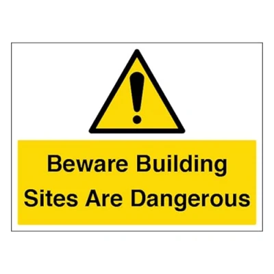 V Safety Beware Building Sites Are Dangerous Large Landscape 400 x 300 mm 2mm Rigid Plastic Sign