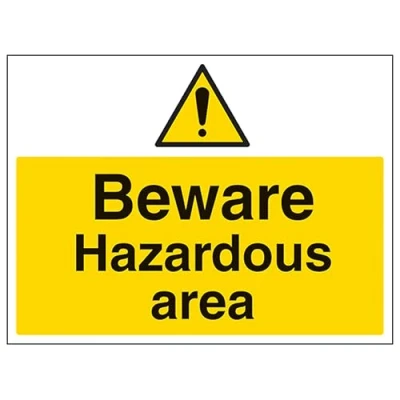 V Safety Beware Hazardous Area Large Landscape 400 x 300 mm 2mm Rigid Plastic Sign