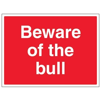 V Safety Beware Of The Bull Large Landscape 400 x 300 mm Glow In Dark 1mm Rigid Plastic Sign