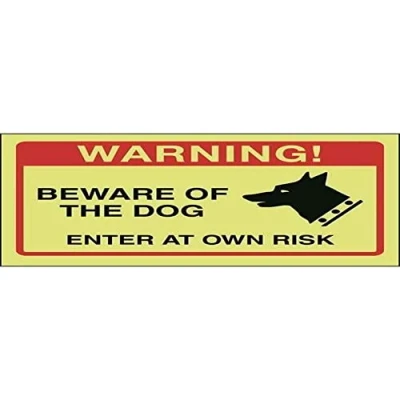 V Safety Beware Of The Dog, Enter At Own Risk Sign 150mm x 100mm Photoluminescent Rigid Plastic