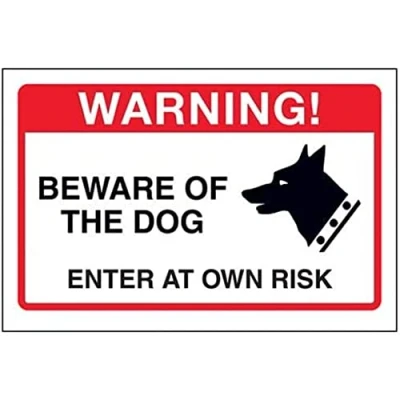 V Safety Beware Of The Dog, Enter At Own Risk Sign 200mm x 150mm 1mm Rigid Plastic