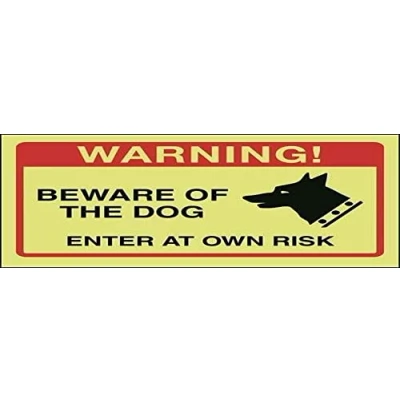V Safety Beware Of The Dog, Enter At Own Risk Sign 200mm x 150mm Photoluminescent Rigid Plastic