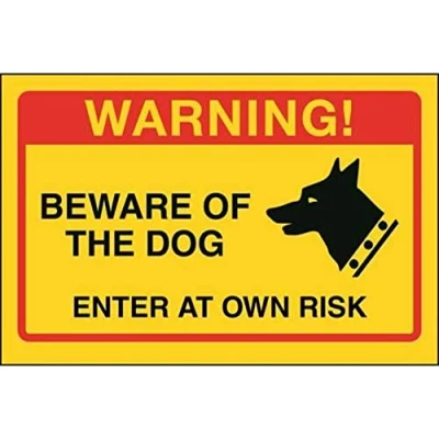 V Safety Beware Of The Dog, Enter At Own Risk Sign 200mm x 150mm Yellow Self Adhesive Vinyl