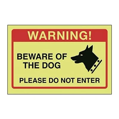 V Safety Beware Of The Dog, Please Do Not Enter Sign 150mm x 100mm Photoluminescent Rigid Plastic