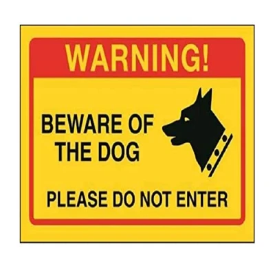 V Safety Beware Of The Dog, Please Do Not Enter Sign 200mm x 150mm Yellow Self Adhesive Vinyl