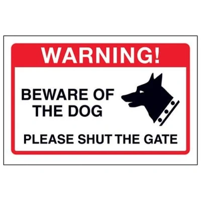 V Safety Beware Of The Dog, Please Shut Gate Sign 150mm x 100mm 1mm Rigid Plastic