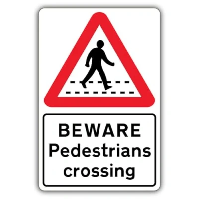 V Safety Beware Pedestrians Crossing Sign 300 x 450 mm 2mm Rigid Plastic