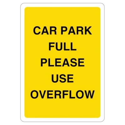 The Car Park Full Please Use Overflow sign directs drivers to alternative parking, ensuring a smooth flow when primary spaces are occupied. Offers essential parking control guidance to customers, employees, and visitors, helping maintain orderly site operations. Compatible with the Signpost and Frame Kit, perfect for displaying temporary car park notices in locations without wall space. Bold, high-quality print with durable UV-stabilised inks ensures a clear, crisp message that withstands outdoor conditions. Meets Health and Safety at Work Act obligations by providing clear information to ensure the safety and wellbeing of all on-site.