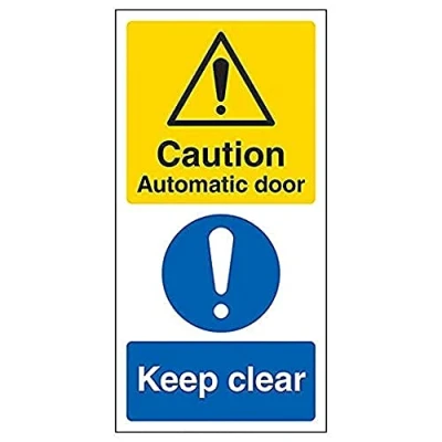A quick and easy way of warning that doors will open automatically when they are approached Our multi-message automatic door signs help promote door safety and warn that automatic doors are in operation Supplementarity message to help direct pedestrian traffic and promote general safety Compliant to the Safety Signs and Signals Regulations and EN ISO 7010 where applicable Easy to apply