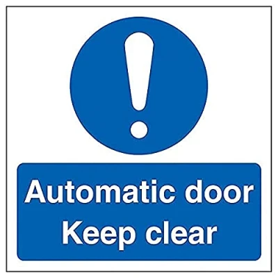 A quick and easy way of warning that doors will open automatically when they are approached Our multi-message automatic door signs help promote door safety and warn that automatic doors are in operation Supplementarity message to help direct pedestrian traffic and promote general safety Compliant to the Safety Signs and Signals Regulations and EN ISO 7010 where applicable Easy to apply
