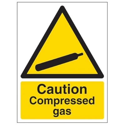V Safety Caution compressed gas 400x600mm Self Adhesive Vinyl Sign
