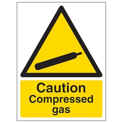 V Safety Caution Compressed Gas Portrait 200 x 300mm 2mm Rigid Plastic Sign