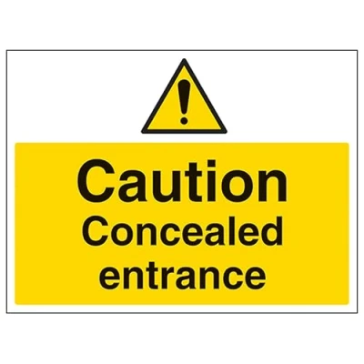 V Safety Caution Concealed Entrance Large Landscape 400 x 300 mm 2mm Rigid Plastic Sign
