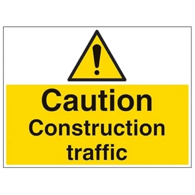 V Safety Caution, Construction traffic 600 x 450 mm Self Adhesive Vinyl Sign