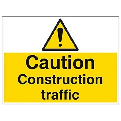 Helps to fulfil legal obligations to inform employees, visitors and the general public of potential hazards as per Health and Safety (Safety Signs & Signals) Regulations 2072 Conforms to EN ISO 7010: 2012 - Warning signs feature a triangular symbol with a black pictogram and yellow background occupying at least 50% of the total sign area Landscape Orientation. Sign reads "Caution. Construction Traffic" Printed on strong 2mm thick white High Impact Polystyrene (HIPS) plastic - ideal for outdoor use
