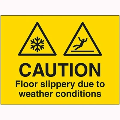 V Safety Caution Floor Slippery Due To Weather Conditions Sign 600mm x 450mm 2mm Rigid Plastic