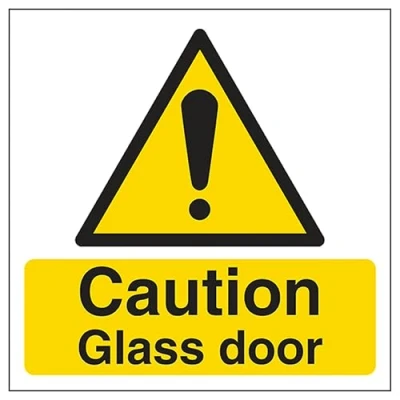 V Safety Caution Glass Door 150 x mm Glow In The Dark 1mm Rigid Plastic Sign