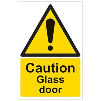 V Safety Caution Glass Door Portrait 200 x 300 mm Glow In The Dark 1mm Rigid Plastic Sign