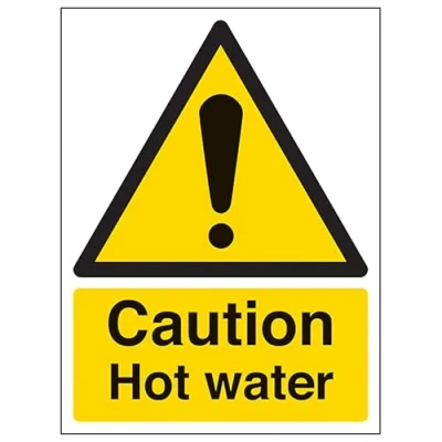 V Safety Caution Hot Water Portrait 150 x 200 mm Glow In The Dark 1mm Rigid Plastic Sign