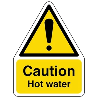 V Safety Caution Hot Water Shaped Sign 200 x 300mm 2mm Rigid Plastic