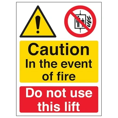 V Safety Caution In The Event Of Fire Do Not Use This Lift Portrait 200 x 300mm 2mm Rigid Plastic Sign