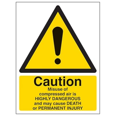 V Safety Caution Misuse Of Compressed Air Portrait 150 x 200 mm Glow In The Dark Self Adhesive Vinyl Sign