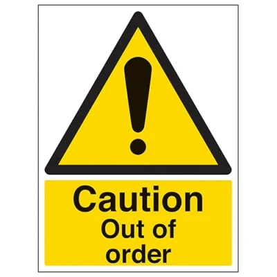 V Safety Caution Out Of Order Portrait 150 x 200 mm Glow In The Dark Self Adhesive Vinyl Sign