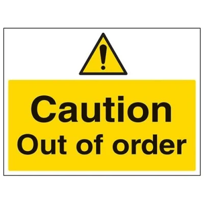 Helps to fulfil legal obligations to inform employees, visitors and the general public of potential hazards as per Health and Safety (Safety Signs & Signals) Regulations 1996 Conforms to EN ISO 7010:2012 - Warning signs feature a triangular symbol with a black pictogram and yellow background occupying at least 50% of the total sign area Landscape Orientation. Sign reads "Caution. Out Of Order" Highly durable Self Adhesive Vinyl material and screen printed message will stand the test of time Sign measures 400 x 300mm. Self Adhesive material will adhere securely to most surfaces