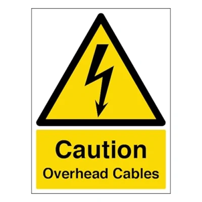V Safety Caution Overhead Cables Portrait 200 x 300mm 1mm Rigid Plastic Sign
